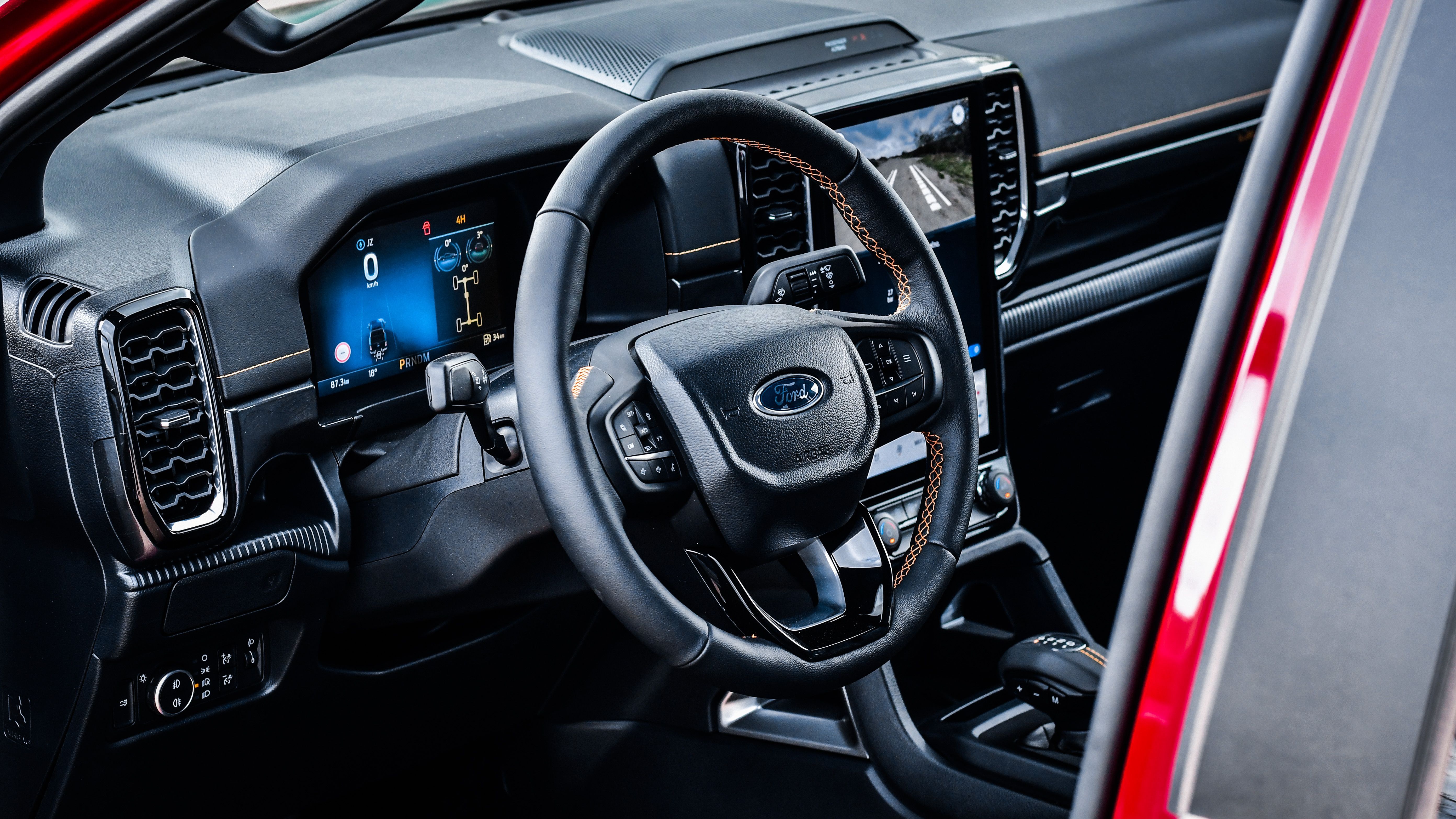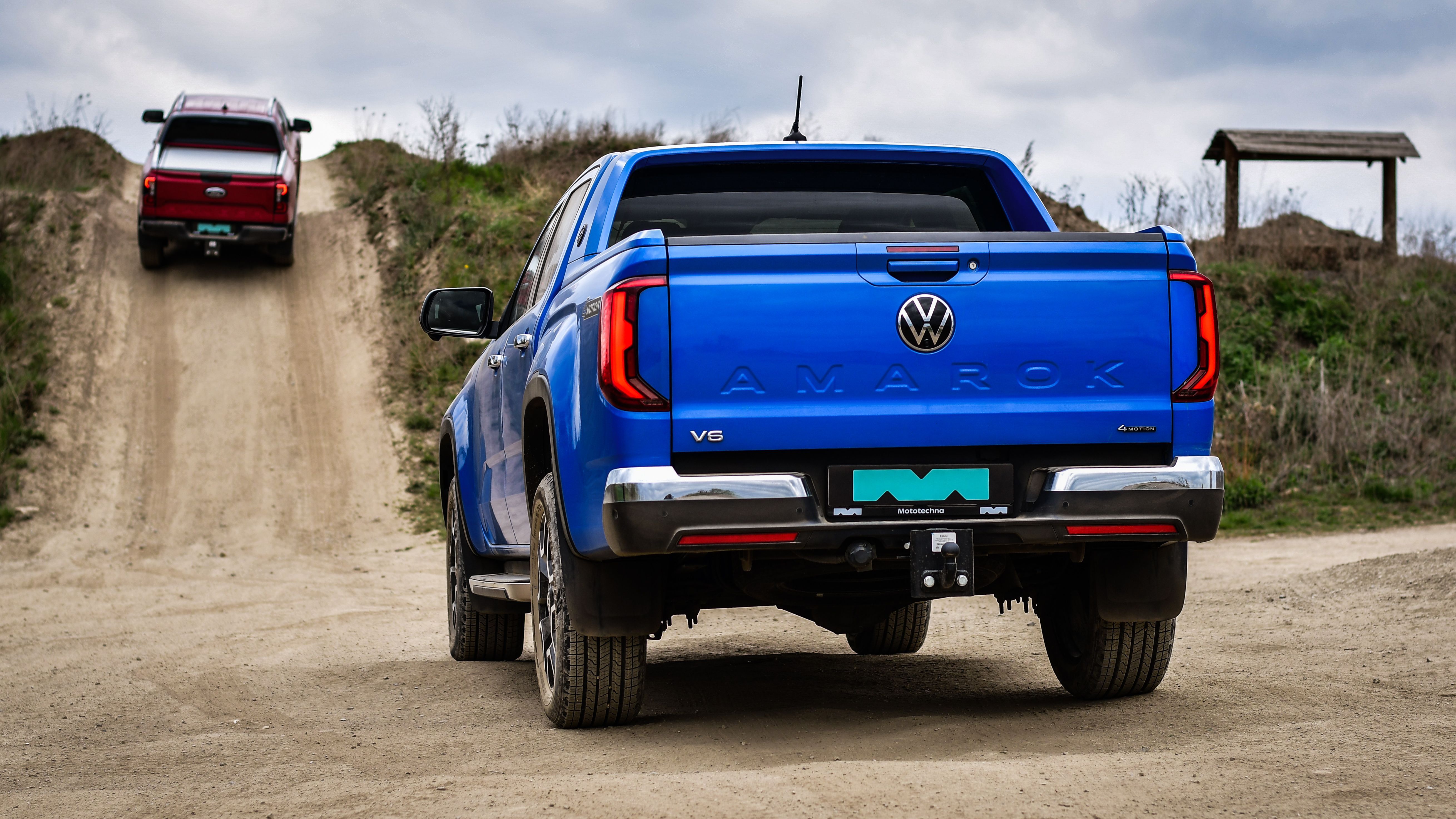 Dalším rozdílem, který nelze přehlédnout je interiér. Liší se volant, infotainment či grafika virtuálního kokpitu. Jiné jsou i výdechy ventilace či ovládání klimatizace – Ford drží klasická kolečka a tlačítka, zatímco Volkswagen má teplotu či ovládání ventilátoru v dotykové obrazovce. Úplně naopak tomu je ovšem u uzávěrky zadního diferenciálu – Amarok má fyzické tlačítko, zatímco Ford jen dotykové. Celkově se dá říci, že jsou oba interiéry velmi povedené, nabízí pohodlná sedadla a je zde opravdu znát, že byl kladen důraz na kvalitu zpracování. Pro někoho může být složitější ovládání skrze dotykovou obrazovku, ale z vlastní zkušenosti víme, že je to jen o zvyku.